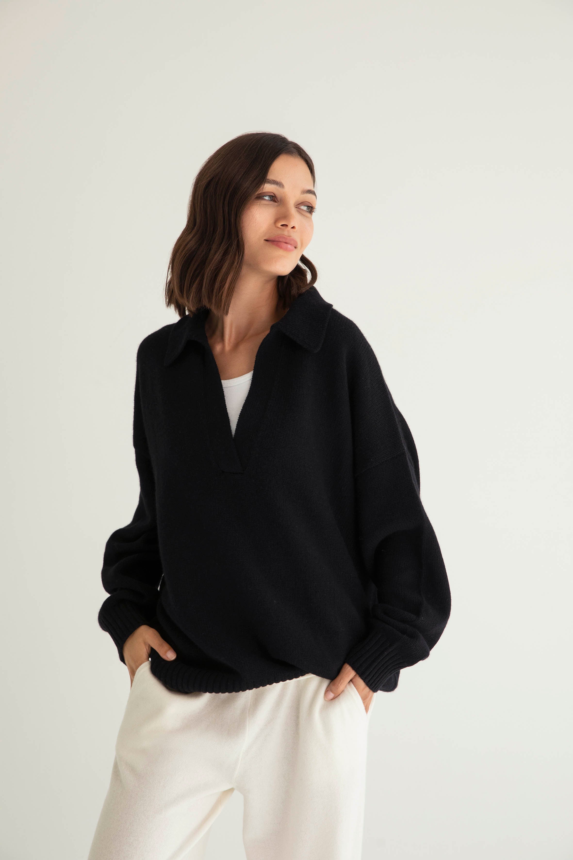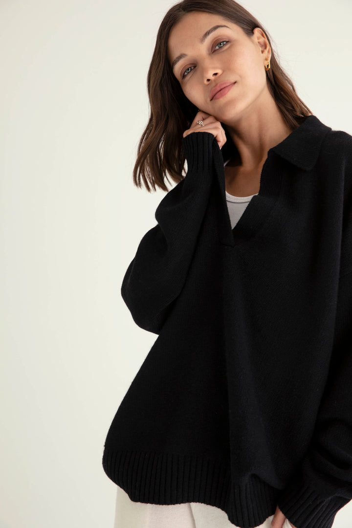 The Cashmere Collar Sweater in Black