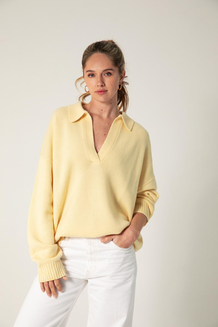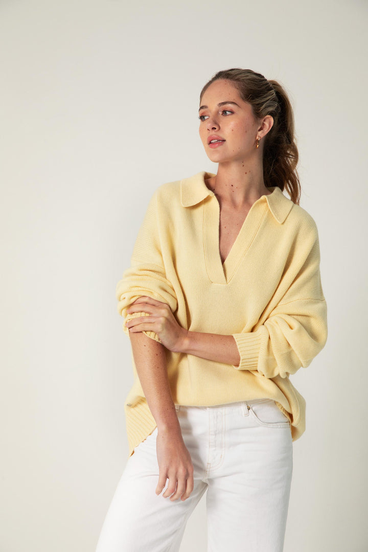 This soft cashmere collar sweater is an oversized piece that is hard to take off. It's easy to throw on over gym leggings, jeans, or cashmere lounge pants. It's super comfy, and you'll love this beautiful olive colour.