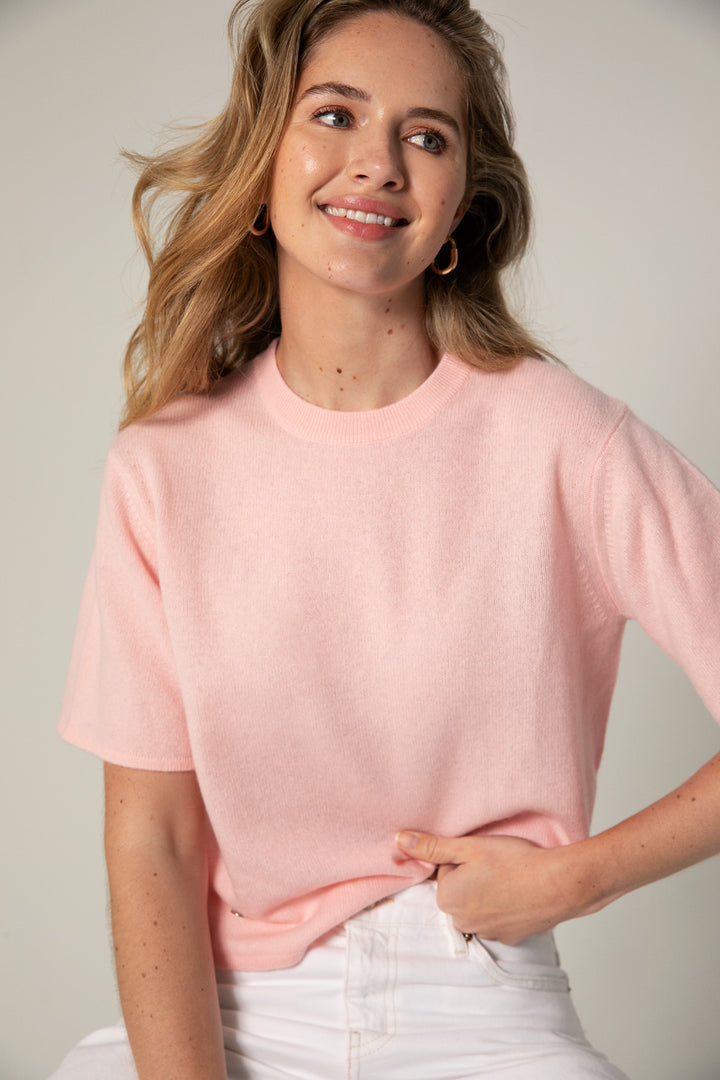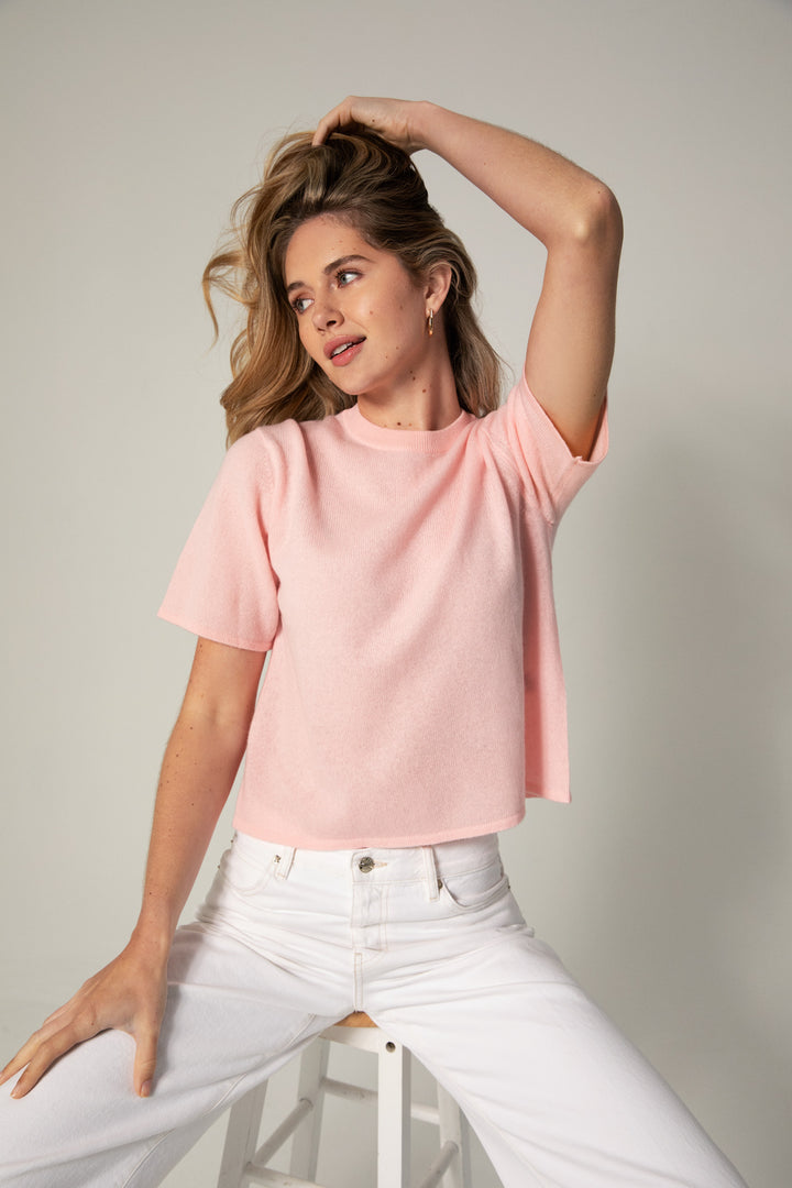 Crafted in pure cashmere, this short-sleeved tee is the ultimate layering piece — light, versatile, and luxuriously soft.
