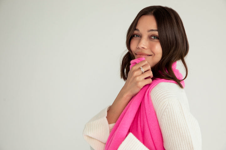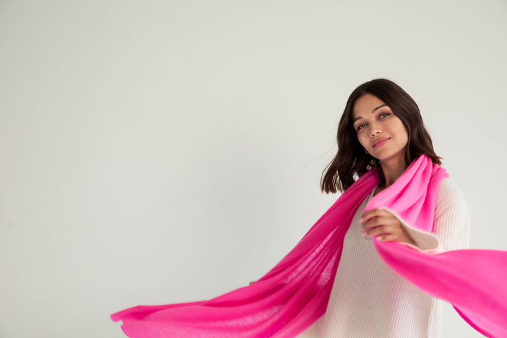 Did somebody say travel? Yes, please. But don't leave home without one of our super-size, super-soft cashmere travel scarves. The ultimate comfort whether you're waiting on a flight, enjoying seashore breezy sundowners, or wrapping up in a winter snowy destination. Your cashmere wrap will become your best travel companion.