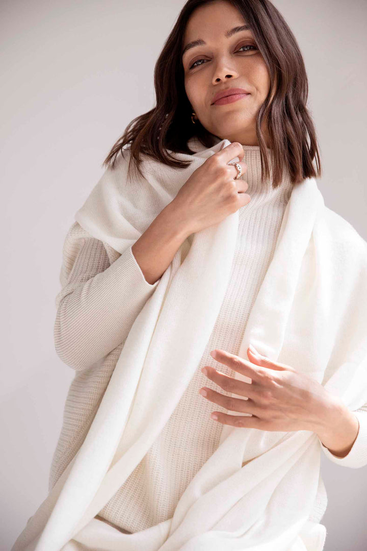 Did somebody say travel? Yes, please. But don't leave home without one of our super-size, super-soft cashmere travel scarves. The ultimate comfort whether you're waiting on a flight, enjoying seashore breezy sundowners, or wrapping up in a winter snowy destination. Your cashmere wrap will become your best travel companion.