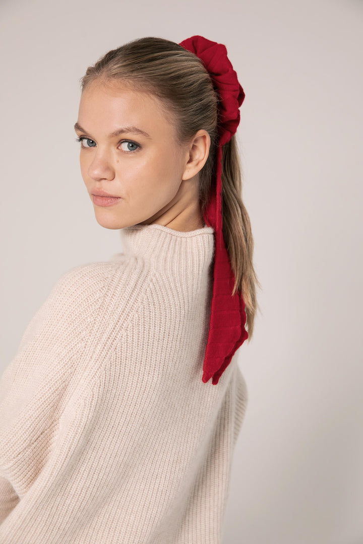 Elevate your everyday life with this soft, 100% pure cashmere scrunchie that delicately holds your hair without pulling.
