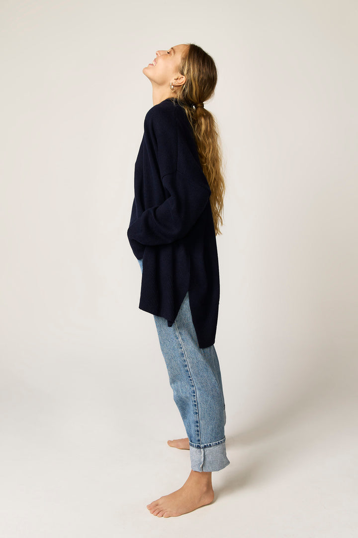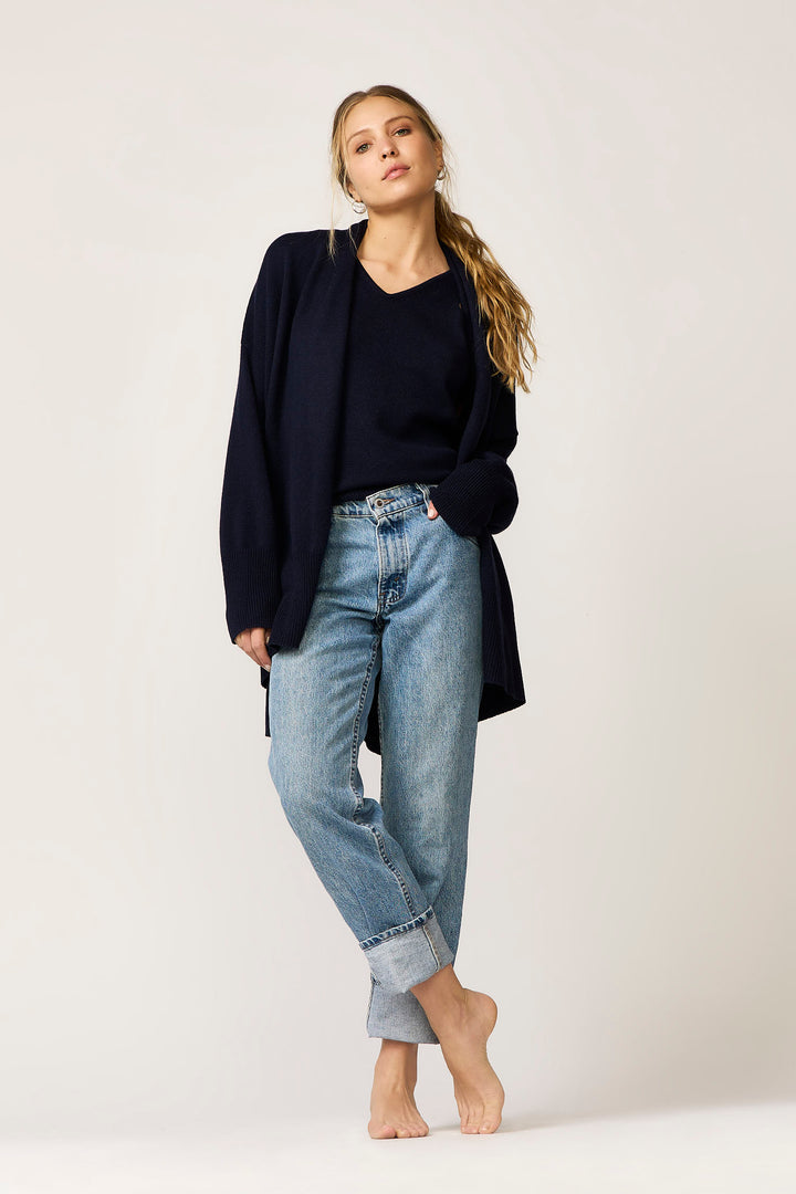 The wear-anywhere soft cashmere cardigan is one of those everyday wardrobe heroes you'll wear with everything you own. Match-it-up with our navy tank or your favourite T-shirt. It's effortless, relaxed dressing at its best, it will become your go-to piece for winter.