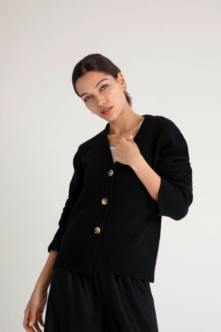 The wear-anywhere soft relaxed cashmere cardigan is one of those everyday wardrobe heroes you'll wear with everything you own. Great paired with skirts, jeans or wide leg trousers. It's effortless, relaxed dressing at its best, it will become your go-to piece for winter.