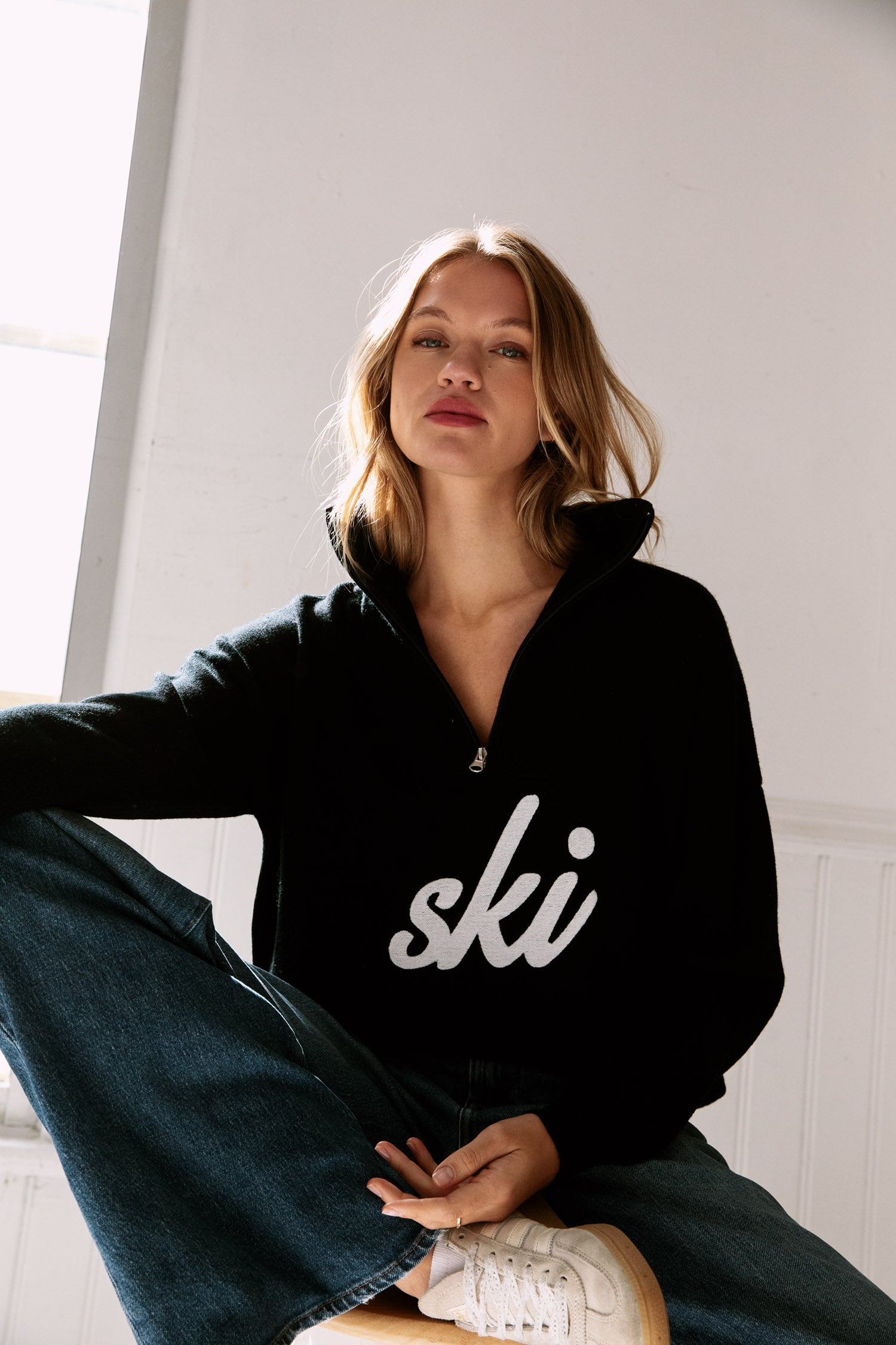Featuring our signature ski motif on the front, it’s available in classic black or crisp white — perfect from slope to après.